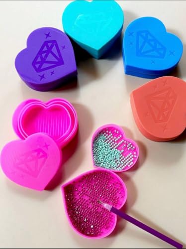 - الأبعاد: تتميز كل علبة على شكل قلب بأقسام منظمة لفرز أحجام مختلفة من خرز واكسسوارات الرسم الماسي.