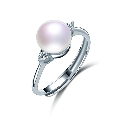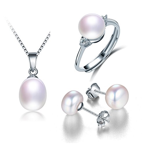 DIAMOVI - مجموعة مجوهرات فاخرة للنساء من دياموفي - قلادة واقراط وخاتم لؤلؤ المياه العذبة الطبيعي بنسبة 100% - فضة استرلينية 925 بتصميم فريد - سلسلة 45 سم مع 8-9 ملم - متوفرة باللون الابيض متعدد الألوان