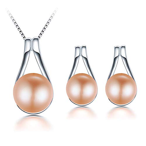 DIAMOVI - مجموعة مجوهرات من عقد وحلقان مرصعة لؤلؤ المياه العذبة دياموفي - الفضة الاسترليني عيار 925 - الزفاف المذهلة - نمط الازياء الفاخرة - ابيض بينك وارجواني زهري للنساء