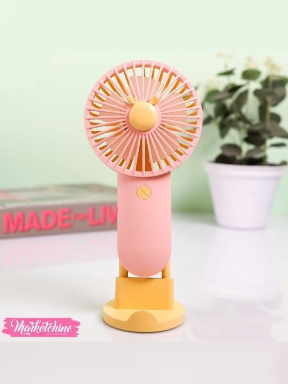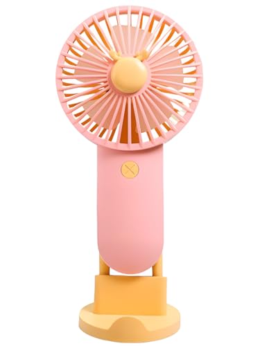 Generic - مروحة محمولة باليد لسطح المكتب، مروحة شحن USB، بطارية غير قابلة للإزالة، مزودة بوظيفة الإضاءة من دياندي، موديل - SQ2200 (أصفر ووردي فاتح)