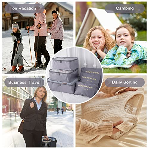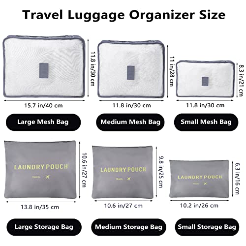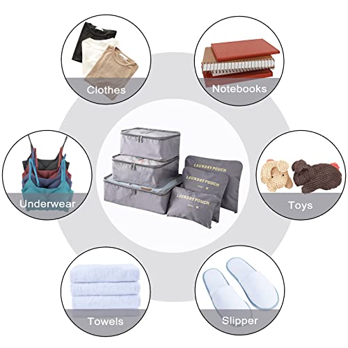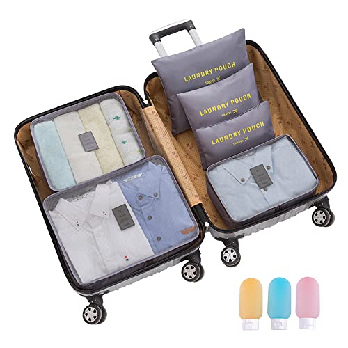 DIBALIYI - مجموعة مكعبات تعبئة للسفر من ديبالي 6 قطع شنط تنظيم الامتعة مع 3 زجاجات سفر سعة 60 مل اساسية لاكسسوارات السفر والملابس والاحذية رمادي قماش