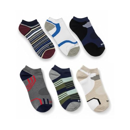 Dice - دايس جوارب سوكيت للرجال، 6 ازواج، نمط مخطط بلون كحلي وابيض ورمادي، مزيج قطني مريح، طول الكاحل