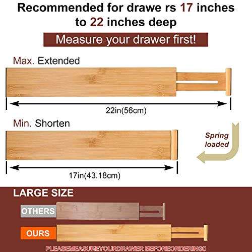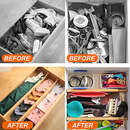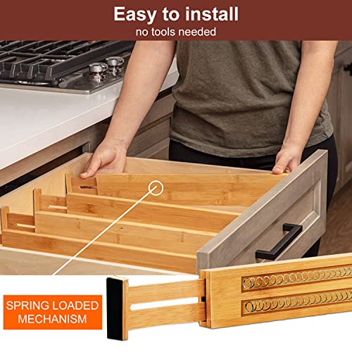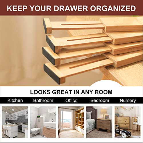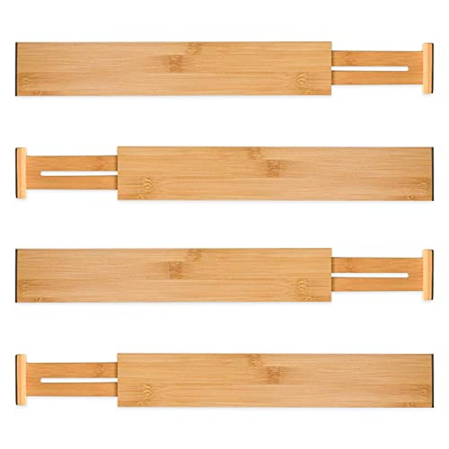 DICOBEE - منظم فواصل أدراج للمطبخ من البامبو قابل للتوسيع والتعديل لأدراج المطبخ والتسريحة وغرفة النوم والحمام والمكتب من دكوبي، 4 قطع، (L، 43 سم - 55 سم)