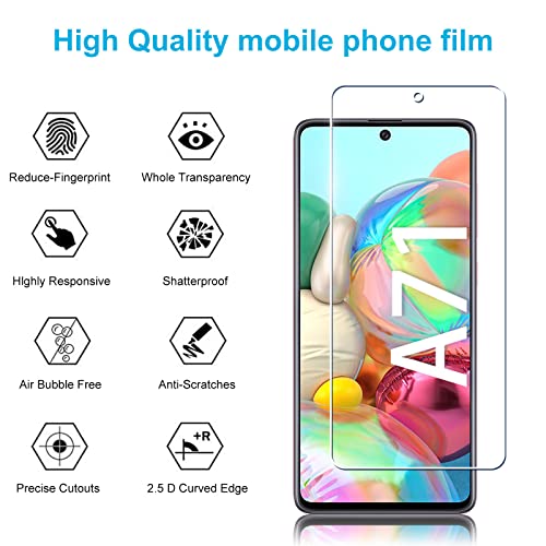 Didisky - شاشة حماية من الزجاج المقوى بملمس ناعم وسهل التنظيف والتركيب لموبايل سامسونج جالاكسي A71 من ديديسكي، لون شفاف، 3 قطع