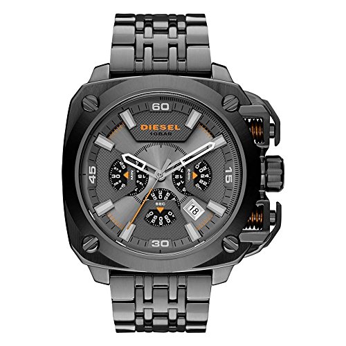Diesel - ساعة كرونوغراف بمينا رمادي وسوار ستانلس ستيل من ديزل بامف، DZ7344، للرجال