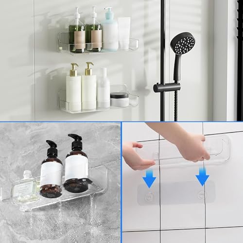- 【تصميم فتحات تصريف】فتحات تصريف بمقاس مناسب في الجزء السفلي من كل مساحة تخزين لاصقة تثبت على الحائط للحفاظ على أغراضك جافة ونظيفة، هذا الرف اللاصق الشفاف سهل وسريع التنظيف، ويمكن أن يجعل الأشياء الصغيرة الفوضوية أكثر تنظيمًا وترتيبًا وأناقة، مما يمنحك مطبخًا أو حمامًا أنيقًا