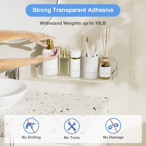 Diesisa - منظم بلاستيك يثبت على الحائط رف من الاكريليك شفاف لاصق بدون ثقب مع شريط ذاتي اللصق للحمام والمخزن والمطبخ وغرفة غسيل الملابس وغرفة المرافق من ديسيسا، مقاس 18× 10× 14 سم