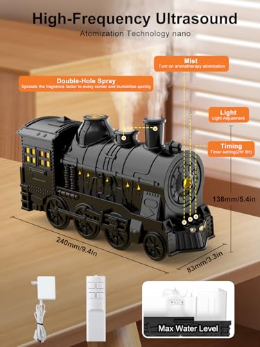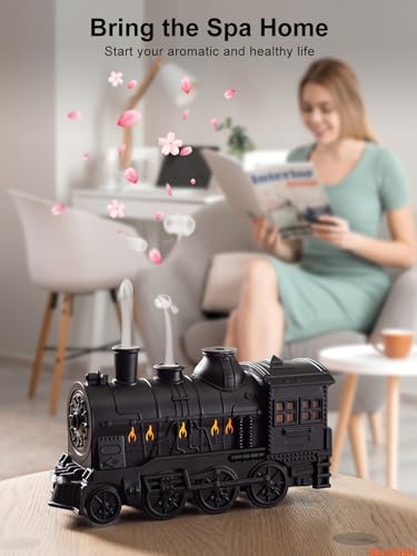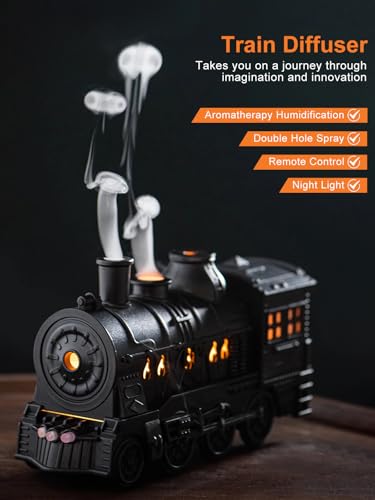 GESPERT - فواحات للزيوت العطرية، مرطب هواء بتصميم قطار 300 مل لغرفة النوم، مرطب رذاذ بارد، فواحة بتصميم قطار وفواحة بـ 2 وضع مع جهاز تحكم، مستلزمات منزل مع عداد وقت وإيقاف تلقائي عند نفاذ الماء