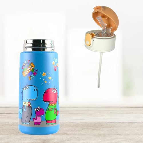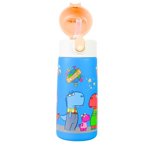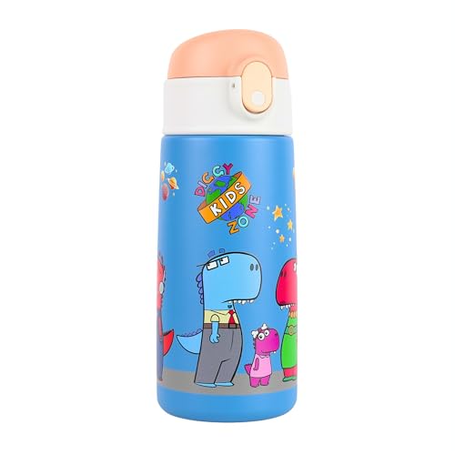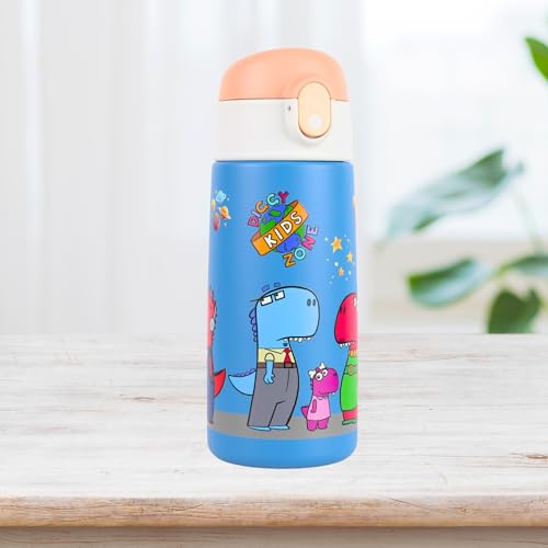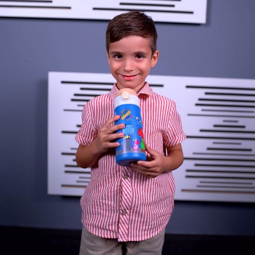 Diggy Kids Zone - زجاجة مياه للأطفال - 4.7 لتر، أزرق | ترمس من فولاذ مقاوم للصدأ | زجاجة معزولة بتفريغ الهواء مانعة للتسرب للمدرسة | زجاجة قابلة لإعادة الاستخدام خالية من بيسفينول أ مع شفاطة من ديجي كيدز زون