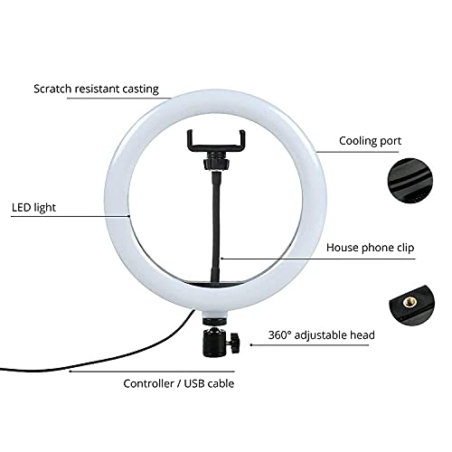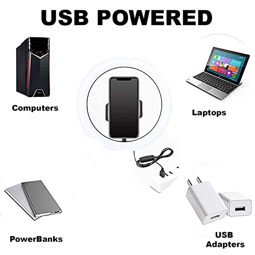 - حلقة إضاءة مع USB - مصباح LED حلقي عالي الطاقة بقدرة 10 واط مناسب لمعظم الأجهزة التي تدعم منافذ USB، مثل أجهزة اللاب توب وأجهزة الكمبيوتر وطاقة الجوال وشواحن USB ومحولات التيار المتردد وما إلى ذلك. هناك أربعة أزرار على ضوء حلقة السيلفي والتي يمكن تشغيلها / إيقاف تشغيلها وتبديل وضع الإضاءة وضبط مستوى السطوع، من السهل العثور على خيارك المفضل في ثوانٍ. مثالي لاستخدام الإضاءة في الاستوديو والمكياج في غرفة خلع الملابس والتخييم والبث المباشر وما إلى ذلك.