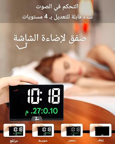 - شاشة كبيرة مقاس 6.5 بوصة مع 3 مستويات سطوع قابلة للتعديل للتشغيل والإيقاف. الشاشة (5.3 بوصة 3.54 بوصة 0.47 بوصة) أكبر من ساعة المنبه الأساسية العادية، وتتكون من أجزاء ملونة ليد موضوعة جيدًا على الساعة. لست مضطرًا لارتداء نظارتي أو رفع رقبتي لرؤية الوقت. 3 إعدادات تعتيم بالضغط على منطقة اللمس العلوية، اضغط باستمرار لإيقاف تشغيل الشاشة دون إزعاج نومك في الليل.