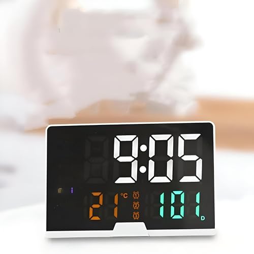 - أرقام متعددة الألوان لوقت واضح للغاية والتاريخ والشهر والأسبوع ودرجة حرارة الغرفة، ساعة التقويم هذه مع شاشة لطيفة متعددة الألوان ومهدئة للعينين تجعلها فريدة من نوعها لاحتياجاتك. 4 شاشات مساعدة ملونة تجعل من السهل التحقق من الوقت والتاريخ والأسبوع ودرجة حرارة الغرفة واللون الأبيض للتاريخ واللون الأخضر لدرجة الحرارة الداخلية واللون البرتقالي لمدة أسبوع.