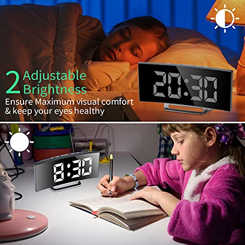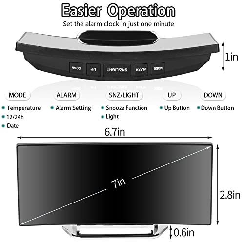 - 【شاشة LED عاكسة كبيرة مقاس 7 بوصة】تأتي ساعة المنبه الرقمية الخاصة بنا مع شاشة LED عاكسة مقاس 7 بوصة حتى تتمكن من رؤية الوقت بوضوح حتى إذا كنت على بعد 9 أمتار من غرفة نومك. وفي الوقت نفسه، يمكنك استخدام ساعة المنبه هذه كمرآة مكياج لمشاهدة جملك طوال اليوم. المرآة الأكريليك معالجة بطريقة خاصة ولن تتعرض للخدش بسهولة.