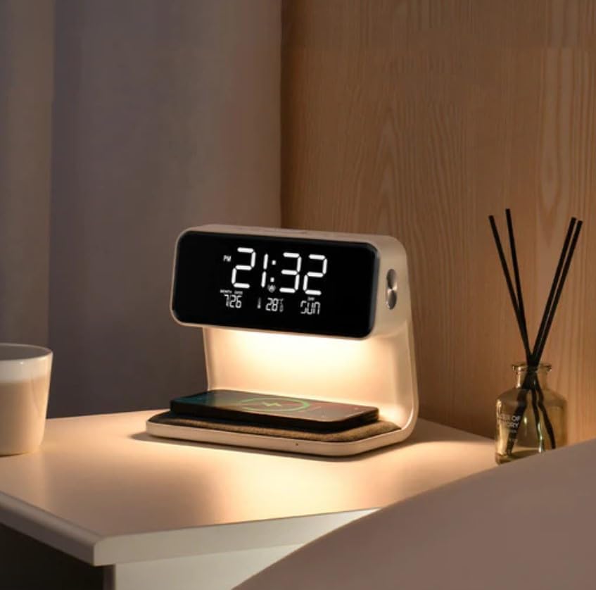 - تصميم متعدد الوظائف: تتميز بلوحة شحن لاسلكي للموبايلات وشاشة ليد تعرض الوقت والتاريخ ودرجة الحرارة، بالإضافة إلى خاصية ضبط إضاءة الليل.