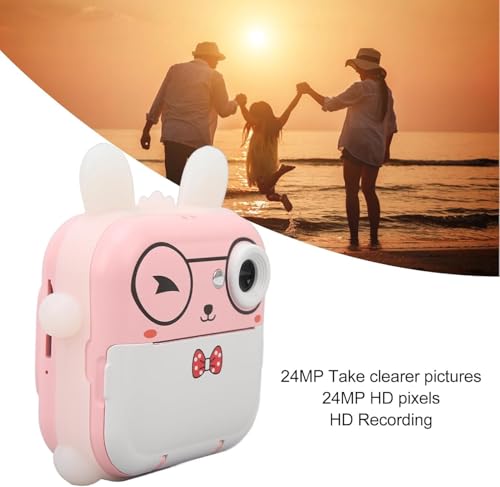 Generic - كاميرا رقمية فورية بدقة 24 ميجابكسل، تصميم ارنب زهري مع طباعة حرارية، ميزات صور ذكية