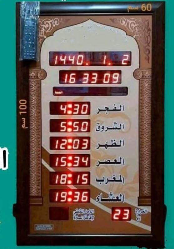 Generic - ساعة حائط رقمية للصلاة الإسلامية، شاشة ليد، كتابة عربية، إطار زخرفي، 60 × 100 سم