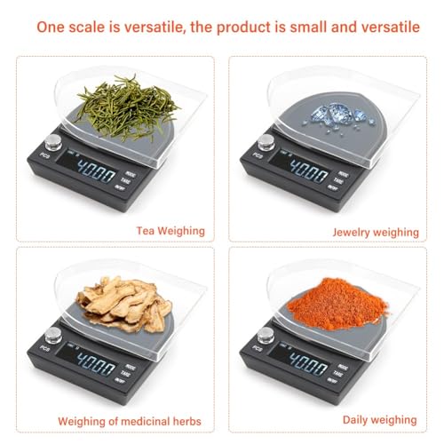 - دقة عالية: يزن حتى 500 جم بدقة 0.01 جم - مثالي للمجوهرات أو العملات المعدنية أو التوابل أو الاستخدام في المختبر. كل جم مهم عندما يتعلق الأمر بالقيمة والنكهة.