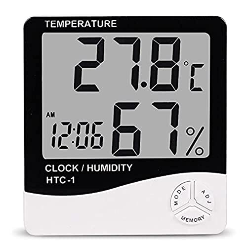 Generic - جهاز رقمي لقياس مستوى الرطوبة ودرجة الحرارة ويحتوي على ساعة، مزود بشاشة ال سي دي HTC-1
