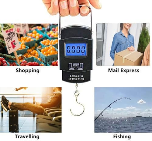 - سعة ودقة عالية: ميزان رقمي بحد أقصى للحمولة 50 كجم وقياسات دقيقة تبدأ من 10 جرام حتى 50 كجم، يتميز بدقة قدرها 5 جرام للأوزان حتى 10 كجم ودقة قدرها 10 جرام للأوزان الأعلى؛ مما يجعله مناسبًا تمامًا لشنط السفر، وصيد الأسماك، والاستخدام المنزلي