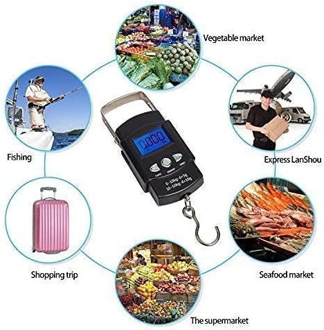 Generic - ميزان رقمي للجيب يعلق بخطاف، يزن من 5 جرامات حتى 50 كيلوجرامًا، سهل الحمل ومناسب للصيد والسفر والتسوق ووزن المنتجات في أي مكان