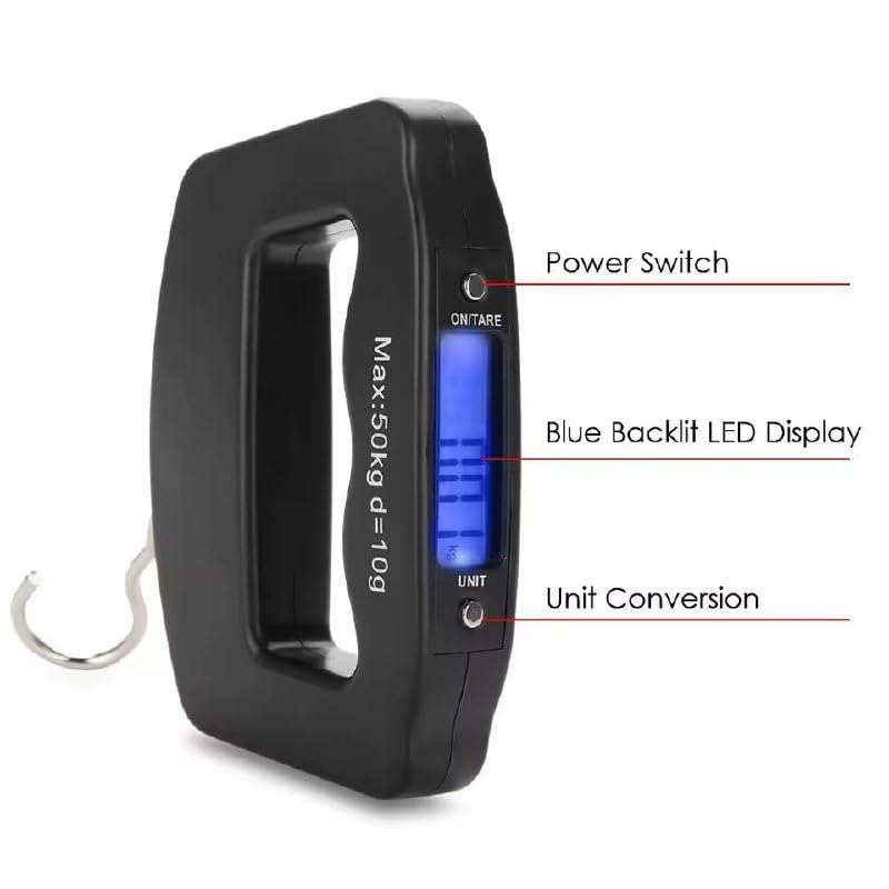 - قياس دقيق بوزن يصل إلى 50 كجم: يتميز هذا الميزان الرقمي بقدرته على قياس الأوزان الثقيلة بدقة متناهية، مما يجعله الأداة الأفضل للتأكد من وزن حقائبك قبل التوجه للمطار وتجنب أي رسوم إضافية مفاجئة.