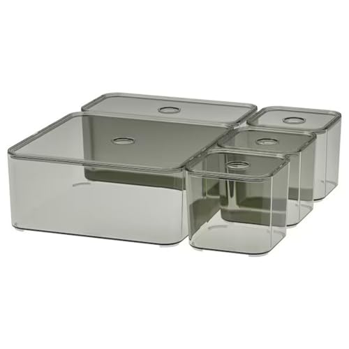 - محتويات العبوة: مجموعة صناديق بغطاء فيسلان، لون رمادي (مجموعة من 5 قطع)