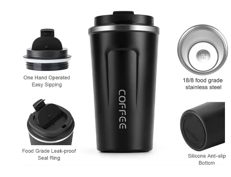 - مظهر أنيق وعصري: تصميم أسود عصري مناسب للقهوة أو الشاي أو الماء أو أي مشروبات ساخنة وباردة.