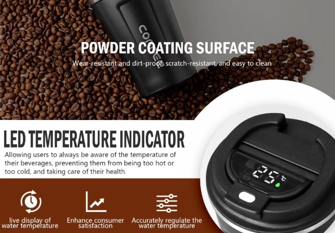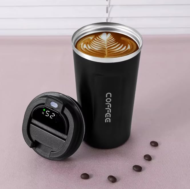 Generic - مج حراري رقمي مصنوع من الستانلس ستيل 304 لتبديد الحرارة، كوب قهوة قابل لاعادة الاستخدام للمشروبات الساخنة والباردة - اسود