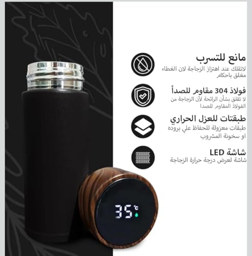 Generic - مج حراري رقمي معزول صغير بتفريغ الهواء كوب قهوة مفرغ محمول للسفر زجاجة مياه الاستانلس ستيل للشاي والقهوة 220 مل (أسود)