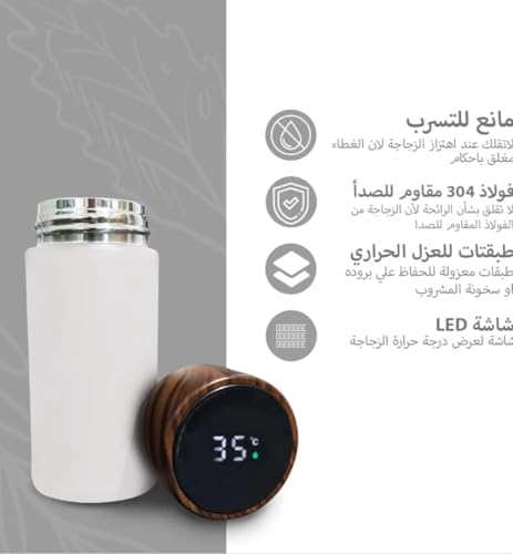 Generic - مج حراري رقمي معزول صغير بتفريغ الهواء كوب قهوة مفرغ محمول للسفر زجاجة مياه الاستانلس ستيل للشاي والقهوة 320 مل (أبيض)