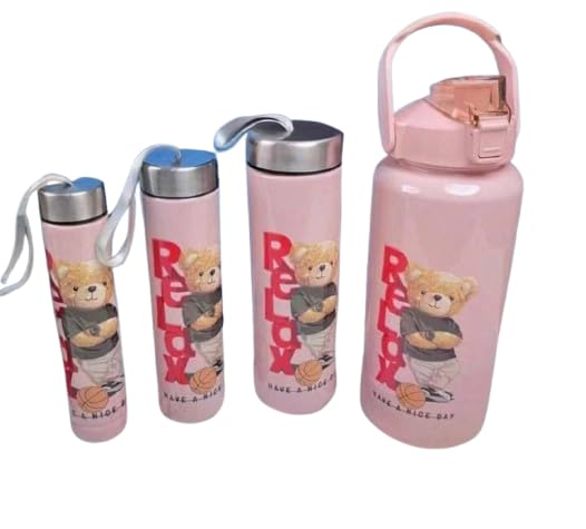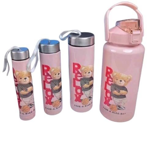 Generic - طقم زجاجات مياه رقمية 4×1 - أكريليك صحي بجودة عالية OM (بينك)