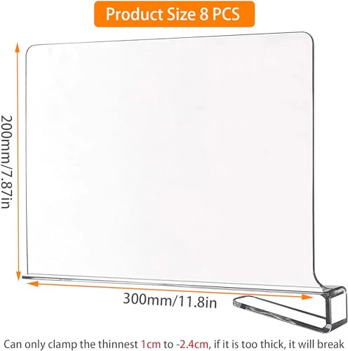 DiiDa - فواصل أكريليك شفافة للرفوف من دييدا، فواصل رفوف متعددة الاستخدامات للملابس مقاس 30 × 20 سم، للملابس والمطبخ والدواليب والتنظيم وغرف النوم، عبوة من 8 فواصل