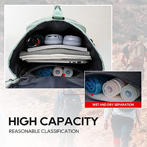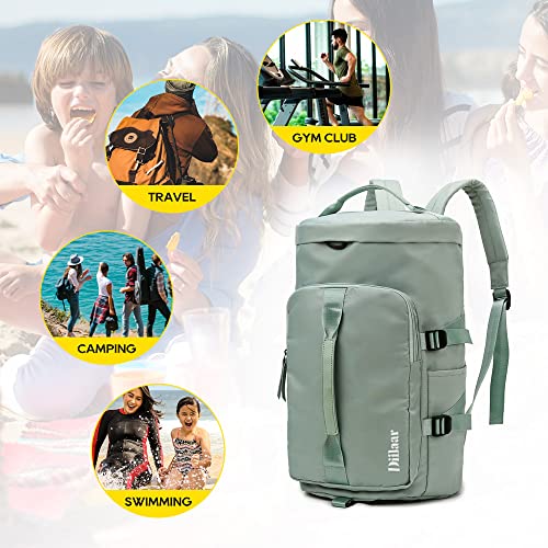 Diilaar - شنطة دفل رياضية لصالة الالعاب الرياضية للرجال والنساء للسفر قابلة للطي بسعة كبيرة مع جيب رطب وحجرة للحذاء منفصلة جافة ورطبة للتسوق وصالة والسفر والعطلات اخضر البوليستر .