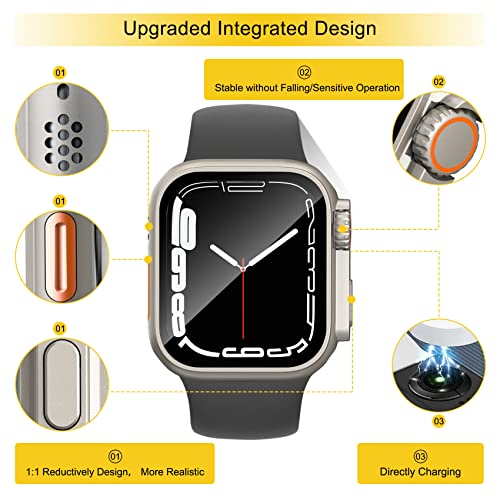Dilhvy - ديليفي حافظة حماية لشاشة ساعة ابل سلسلة 8 7 45 ملم 【حافظة ساعة ابل الترا ستايل】غطاء وجه واقي لساعة اي ووتش يشبه الترا مع طبقة من الزجاج المقوى للنساء والرجال (45 ملم، تيتانيوم)