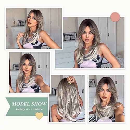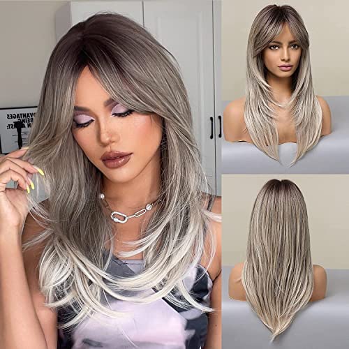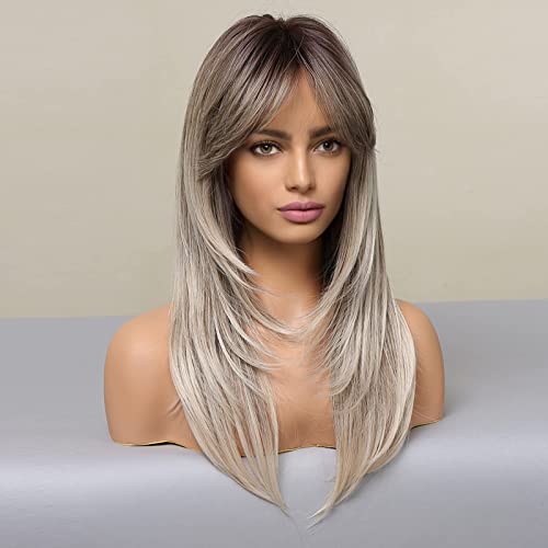 DILLARDS - باروكة للنساء الانهير هير كيوب متدرجة اللون من ديلاردز، بطول الكتف من الألياف المقاومة للحرارة للاستخدام اليومي، لون أشقر