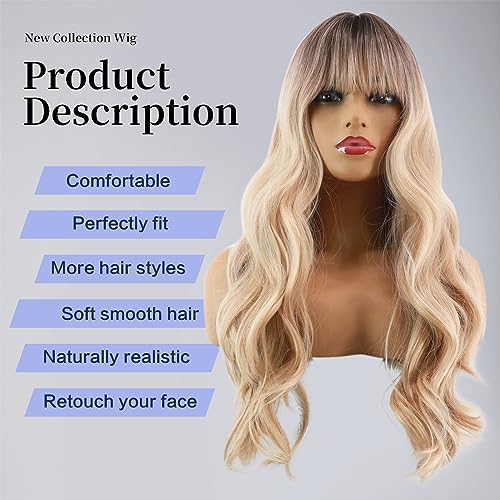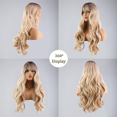 DILLARDS - باروكة بقصة وشعر طويل بيفريمي شعر طويل مموج بلون متدرج ومظهر طبيعي، مقاوم للحرارة ومصنوع من الألياف الصناعية للاستخدام اليومي وفي الحفلات التنكرية، من ديلاردز مقاس 66 سم أشقر (Ombre Honey Blonde)