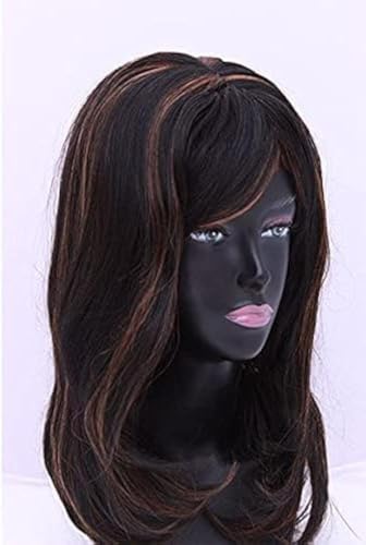 DILLARDS - باروكة متوسط الطول بلون أسود وخصلات ذهبية قابلة للغسيل والكي من ديلاردز