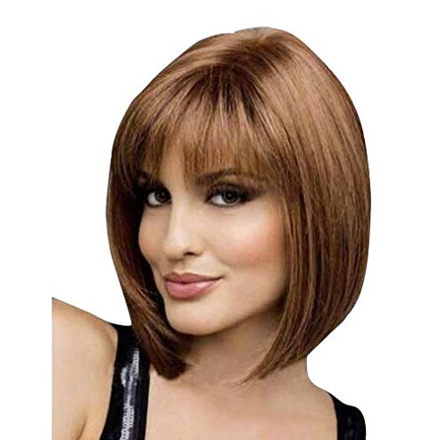 DILLARDS - باروكة شعر بني قصير مفرود من ديلاردز