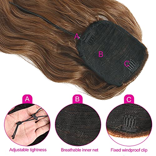 DILLARDS - ديلاردز وصلات شعر بني بتسريحة ذيل الحصان من سينهو، وصلات شعر طويلة ومموجة برباط بطول 20 انش للنساء، وصلات شعر مجعد بتسريحة ذيل الحصان (بني)