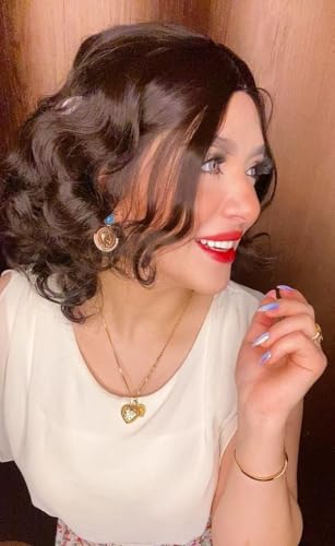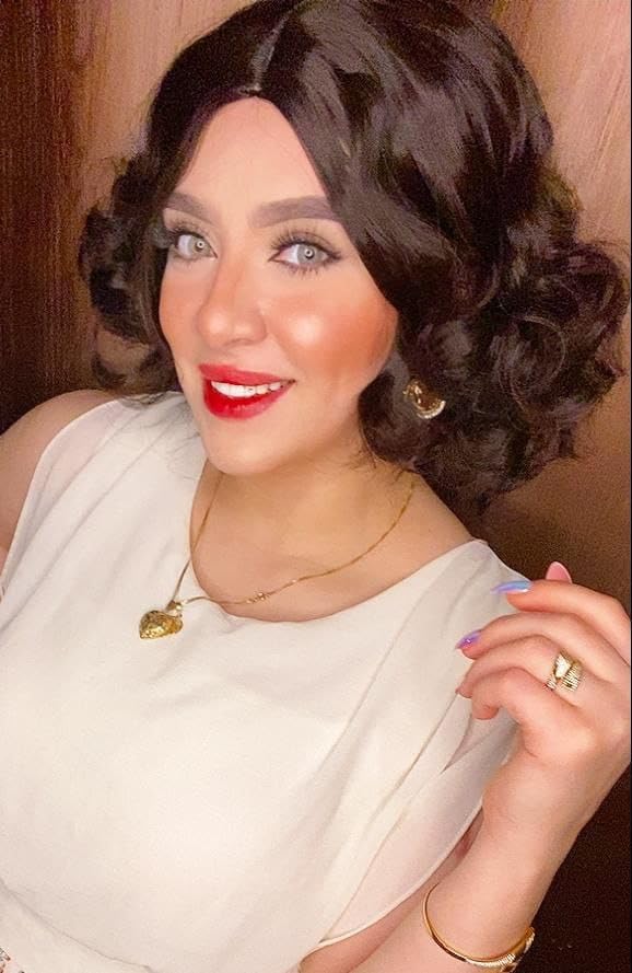 - التصميم: شعر مستعار مموج أنيق بطول الكتف يتميز بشعر صناعي بلون بني غامق مع فرق جانبي بمظهر طبيعي وخصلات مجعدة كثيفة.