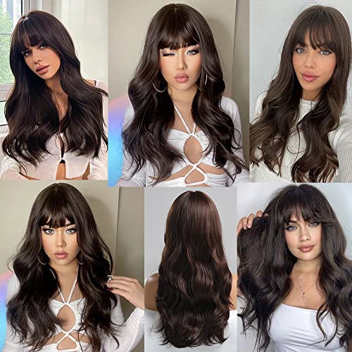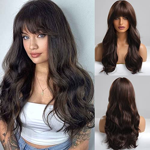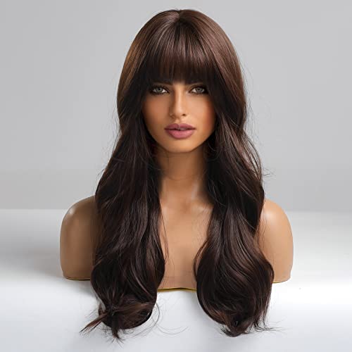 DILLARDS - ديلاردز شعر مستعار بني طويل مجعد للنساء من ايمور، شعر مستعار صناعي مقاوم للحرارة بمظهر طبيعي ناعم