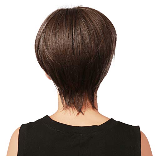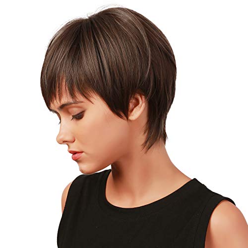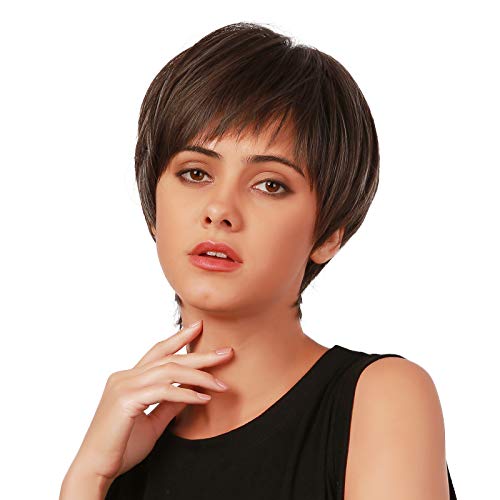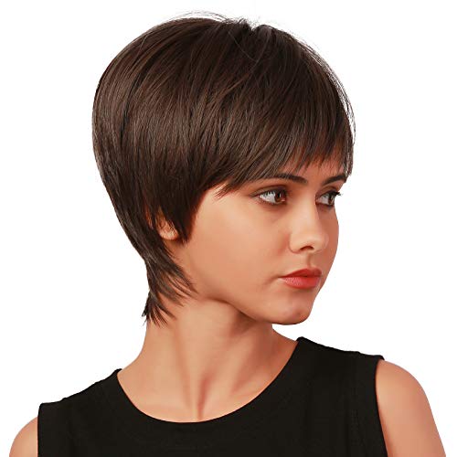 - ديلاردز شعر مستعار قصير بني داكن للنساء من ايمور، شعر مستعار صناعي مفرود مع شراشيب أنيقة للاستخدام اليومي