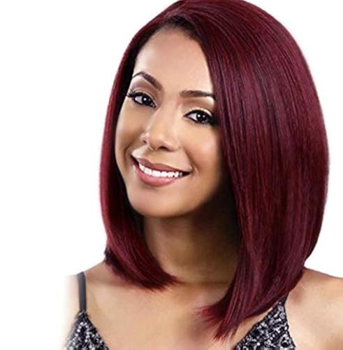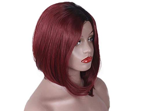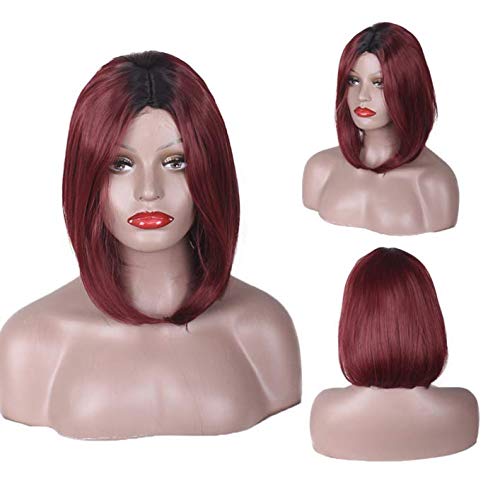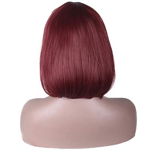 DILLARDS - باروكة عصرية بطابع أوروبي وأمريكي للنساء بقصة بوبو قصيرة ومفرودة مستقيم بجذور سوداء من ديلاردز، أحمر متدرج نبيذي