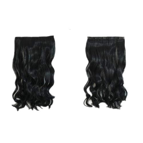 DILLARDS - وصلات شعر للمرأة الأوروبية بحجم 5 بطاقات من قطعة واحدة سميكة بدون أثر شعر مستعار بتصفيفة طويلة ومجعدة من ديلاردز، لون أسود