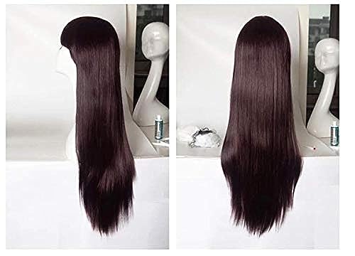 DILLARDS - ديلاردز شعر مستعار انيق طويل مفرود للنساء من فاشون فلافي، لون بني غامق، Cz001-1