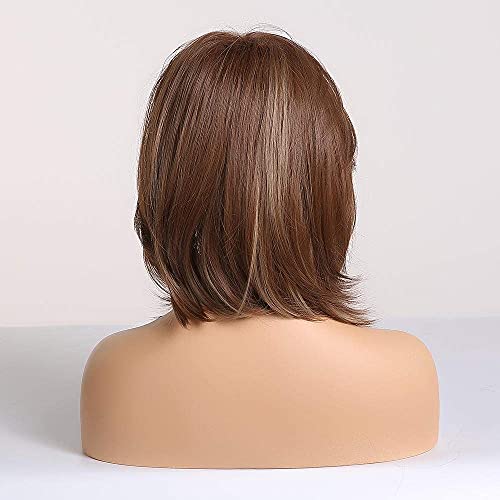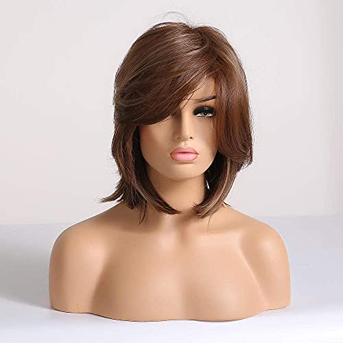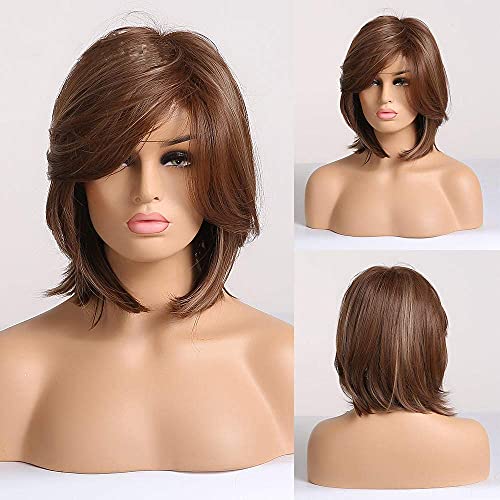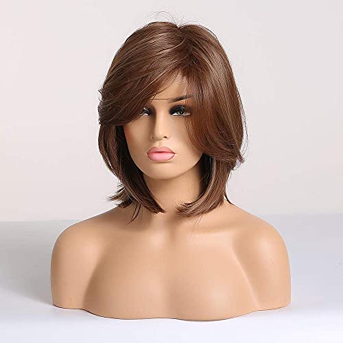 DILLARDS - باروكة شعر مستعار قصير مفرود من ديلاردس للنساء بمظهر طبيعي مع غرة جانبية - بنيأشقر