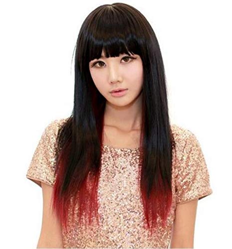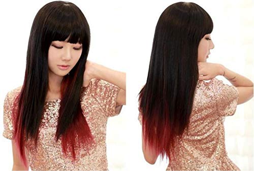 DILLARDS - باروكة شعر مستعار H030 طويل متدرج مفرود مع غرة مسطحة للنساء والبنات من ديلاردز - أحمر نبيذي