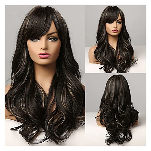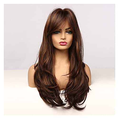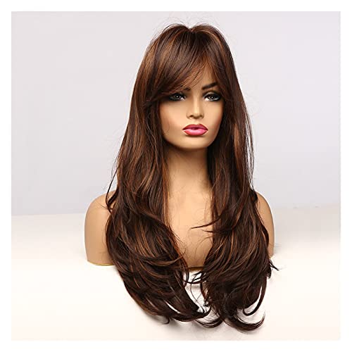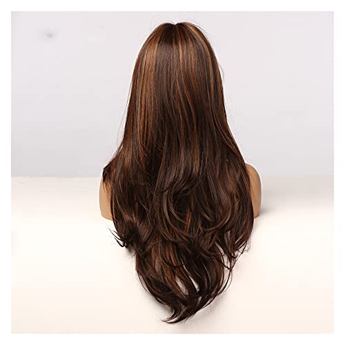 DILLARDS - ديلاردز شعر مستعار طويل مجعد بلون بني داكن وذهبي شديد اللمعان ومقاوم لدرجات الحرارة العالية من جيلب (اللون: Lc271 1)