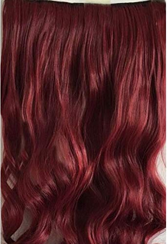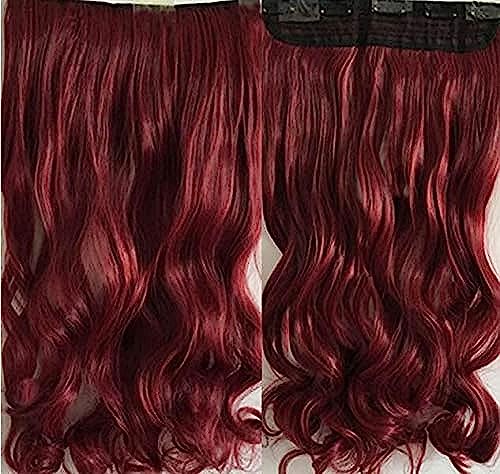 DILLARDS - ديلاردز وصلة شعر صناعي مقاوم للحرارة ومنفوش ومموج طويل ومجعد للنساء، لون احمر نبيذي - H121
