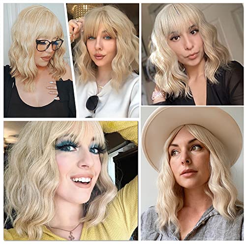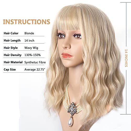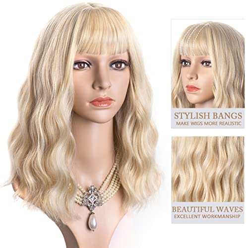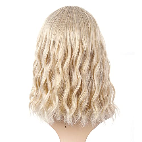 DILLARDS - باروكة ايتايلر قصيرة بشعر أشقر مموج مع قصة بطول متوسط 14 سم من الألياف الصناعية للحفلات والتنكّر من ديلاردز، لون هوني بلوند